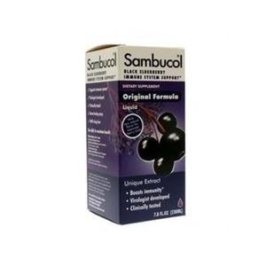 Sambucol® Black Elderberry Immune System Support* Dietary Supplement Original Formula (7.8 fl. oz.) ? Supports immune system ? Virologist developed ? Clinically tested ? Great tasting syrup ? 100% drug free ? Use daily for maximum benefit When winter starts wearing you down, give your system a boost with Sambucol®. Sambucol® is a unique extract of black elderberry, a centuries-old herbal remedy now recognized as nature's richest source of anthocyanins, a class of flavonoids that are thought to help stimulate the body's immune response. Sambucol®'s patented formulation preserves the potency of these powerful flavonoids, providing a dietary supplement with enhanced antioxidant effectiveness to help give your system the daily support it needs. Tested in clinical studies and trusted by millions worldwide, Sambucol® is the natural way to help your family stand up to winter's worst. See all Sambucol Original Liquid Black Elderberry 7.8 fl.ozOverviewRelateItems